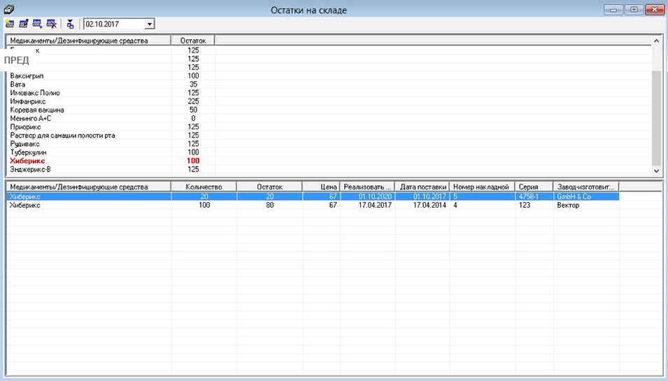 - Учет медикаментов и дезинфицирующих средств на складе.