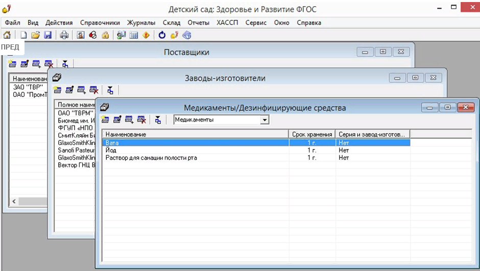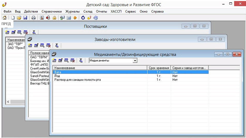 - Учет медикаментов и дезинфицирующих средств на складе.