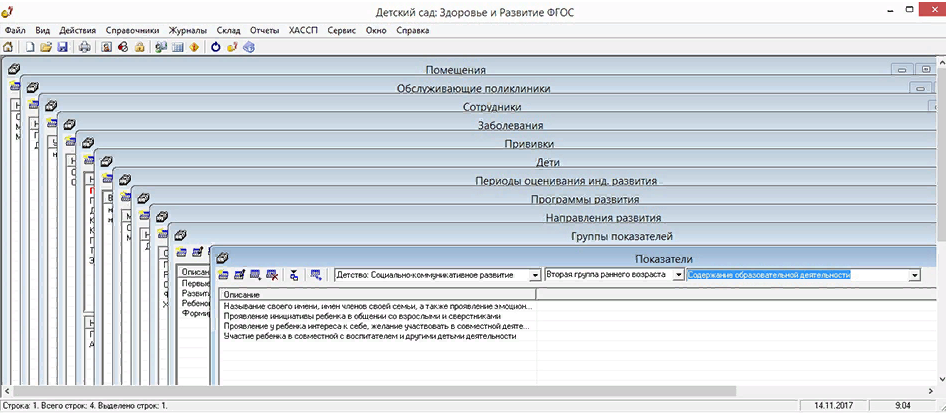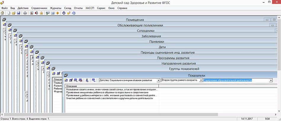«Детский сад: Здоровье и Развитие» — программа для анализа развития, учета посещаемости и заболеваемости детей в дошкольных образовательных организациях (ДОО), контроля выполнения санитарно-гигиенических норм. Данная программа сочетает в себе два направления: здоровье детей и их развитие. Оба эти аспекта являются неотделимыми как с точки зрения работы детских учреждений, так и с технической точки зрения разработки программного продукта, обеспечивающего сбор и анализ данных этих процессов.