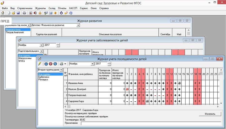 - Ввод ежедневной посещаемости и заболеваемости детей.