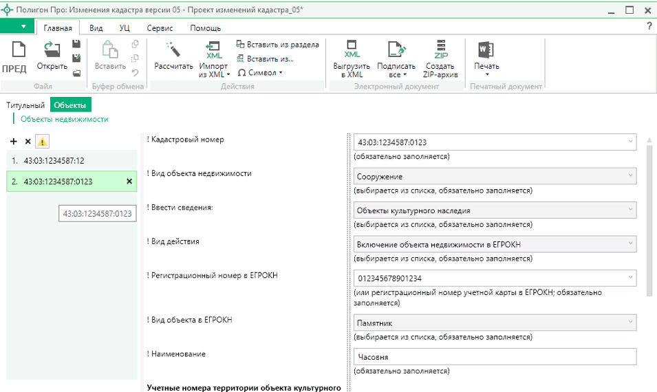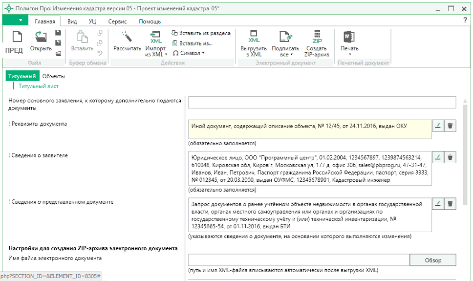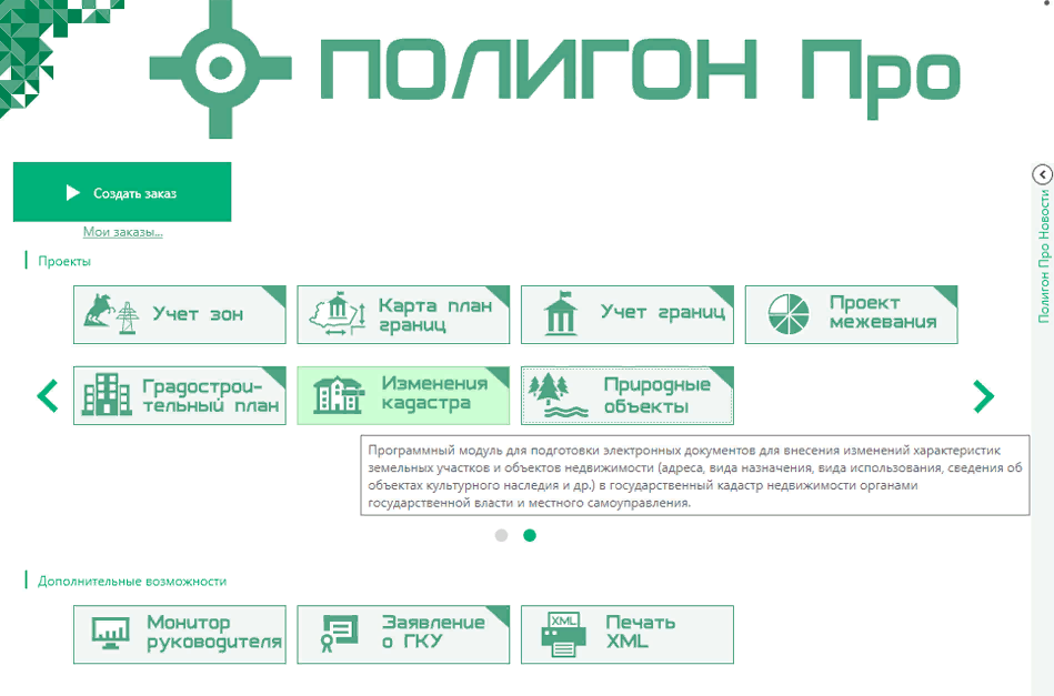 «Полигон Про: Изменения кадастра» — Программа для создания XML-файлов, предназначенных для передачи сведений об изменениях характеристик земельных участков и объектов капитального строительства в орган кадастрового учета (ОКУ).
