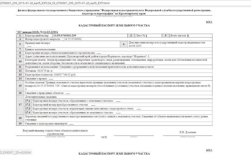 - Кадастровый паспорт земельного участка (версии 04, 05, 06)