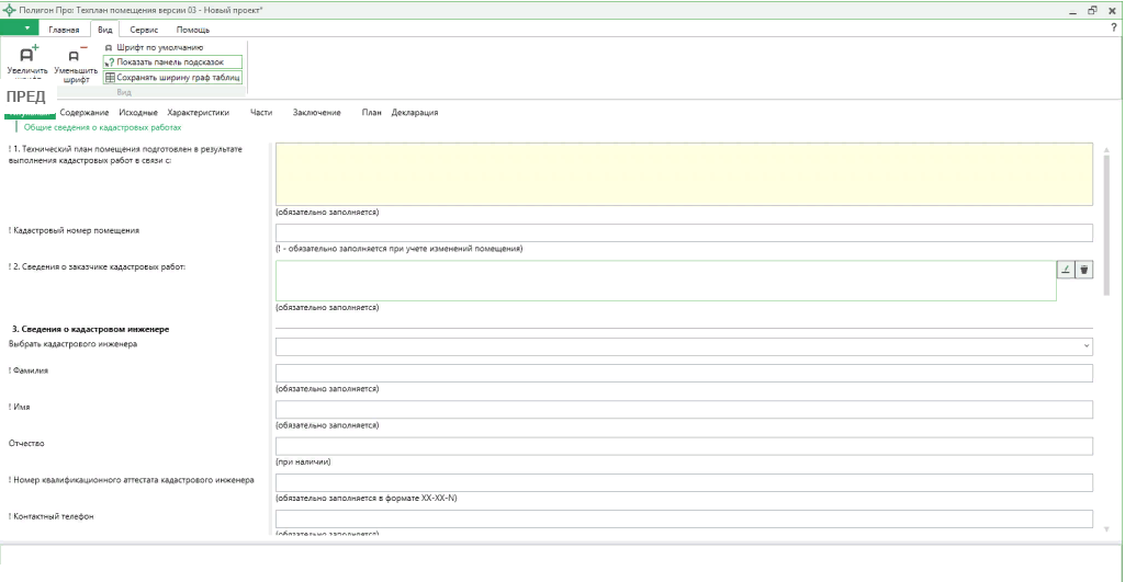 - Сохранение постоянных данных, например, о кадастровом инженере, чтобы их не вводить повторно, а выбирать из списков.