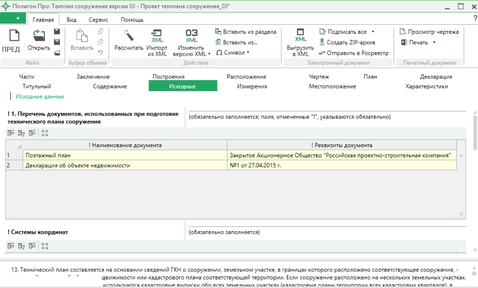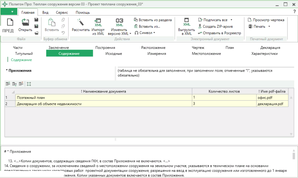Лицензии «Полигон Про: Техплан сооружения» для автоматизации оформления технического плана сооружения — документов, необходимых для постановки сооружений на кадастровый учет, внесения новых сведений (изменений) о сооружении, с формированием как печатных документов, так и электронных XML-документов, ZIP-архива, а также отправки в Росреестр.