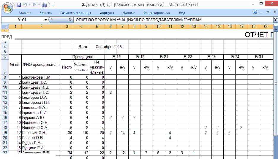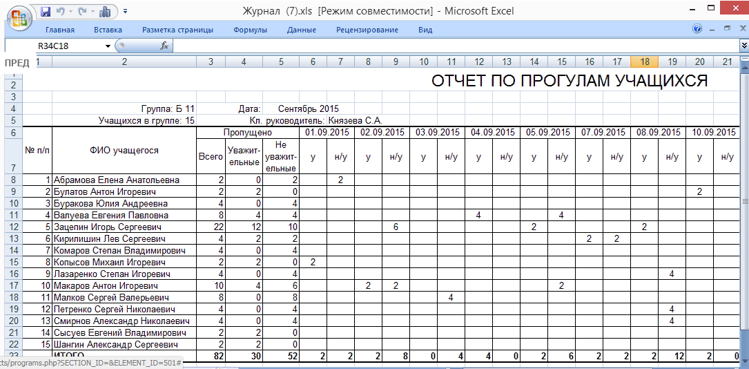 - Добавлена возможность печати отчетов по прогулам: отчет по прогулам студентов в разрезе групп, отчет по прогулам студентов в разрезе преподавателей, отчет по прогулам студентов, выбранной группы.