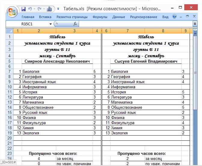 - Составление ведомости, сводной ведомости, табеля успеваемости.