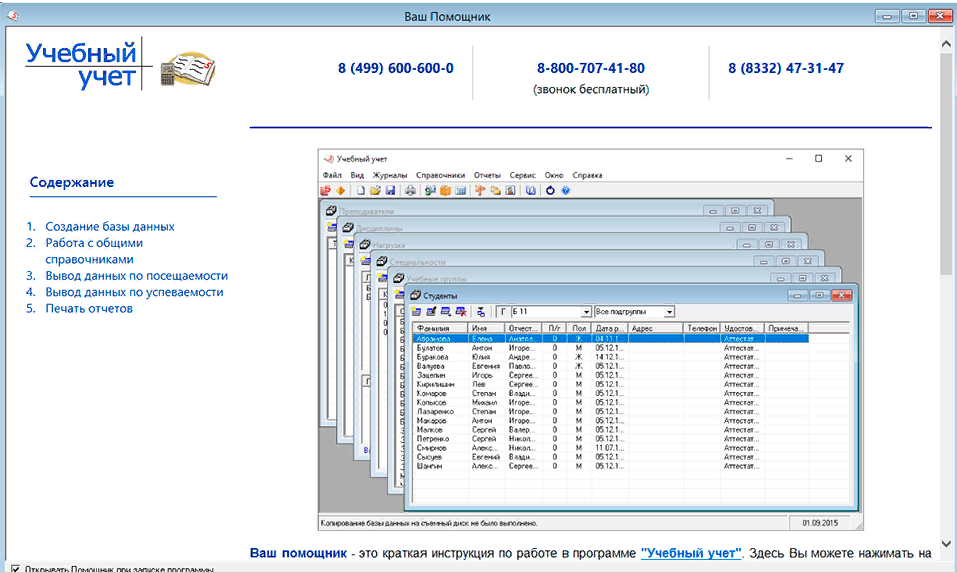 - Добавлена возможность отправки письма в техническую поддержку из программы «Учебный учет».