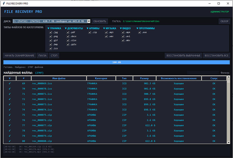 File Recovery PRO предназначена для восстановления удаленных файлов с HDD и SSD дисков, карт памяти, флэшек с любой файловой системой Windows. Перейти к описанию