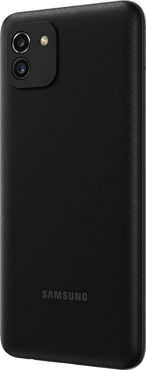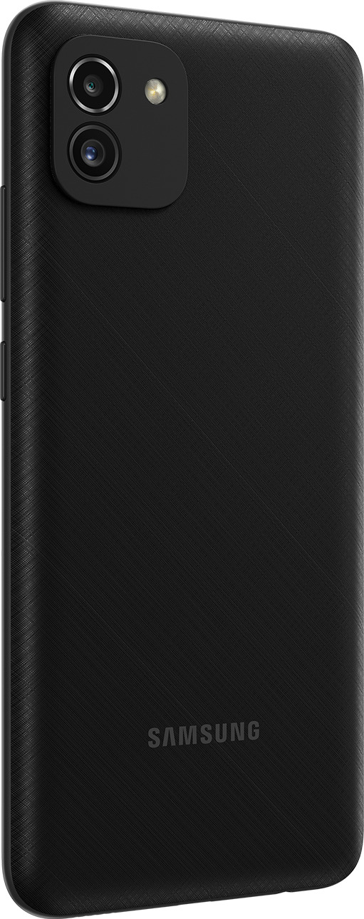 Galaxy A03 сочетает классический выдержанный стиль и удобство использования. Оригинальная текстура корпуса обладает повышенной устойчивостью к царапинам и обеспечивает надежный хват в руке. Выберите один из доступных цветов: черный, красный или синий.