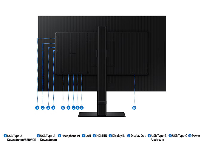 Этот монитор оснащён широким спектром интерфейсов, включая USB-C, LAN-порт и поддержку гирляндного подключения (Daisy Chain). Порт USB Type-C поддерживает зарядку мощностью до 90 Вт и передачу данных через один кабель, обеспечивая удобство работы без лишних проводов. Встроенный LAN-порт упрощает подключение ноутбука к сети Ethernet, а функция Daisy Chain позволяет легко расширить рабочее пространство за счёт последовательного соединения двух мониторов.