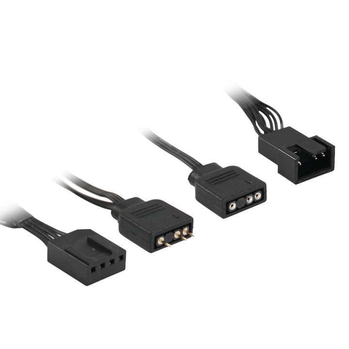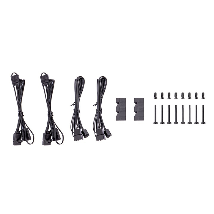 Сквозная схема сокращает 4-pin PWM и 3-pin ARGB порты на материнке, подключая цепочку вентиляторов двумя 900-мм кабелями для чистой сборки без беспорядка. Комплект включает зажимы для фиксации ARGB-интерфейса (+5V, Data, GND), исключая расцепления во время монтажа.